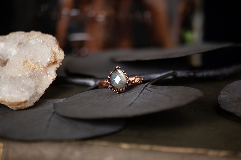 Electroformed Copper Python Bone & Fern Earrings with Carnelian or Smoky Quartz